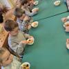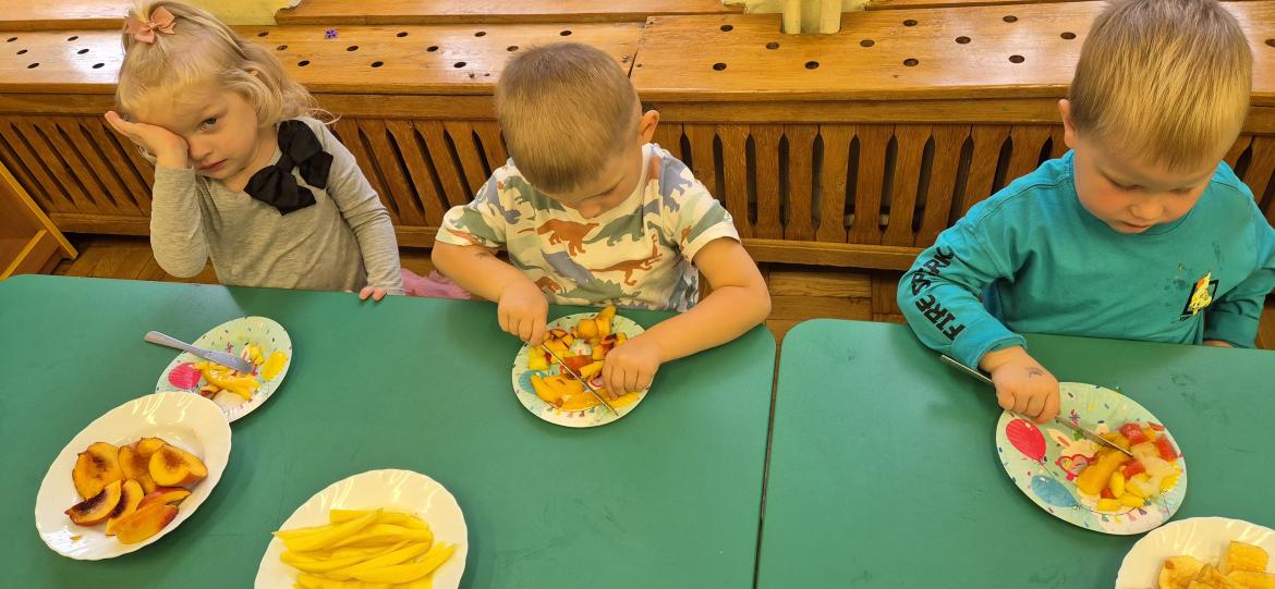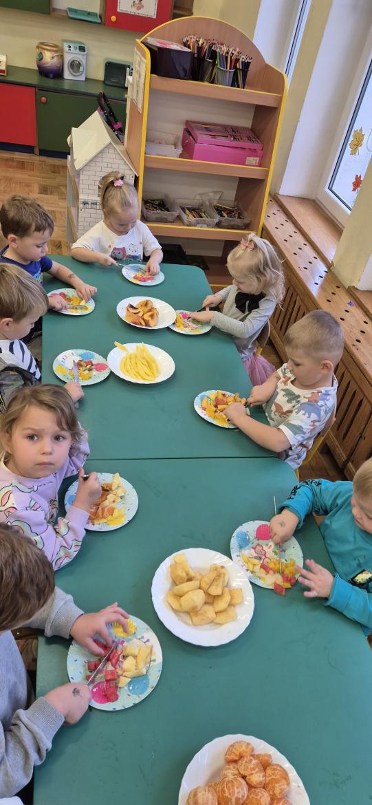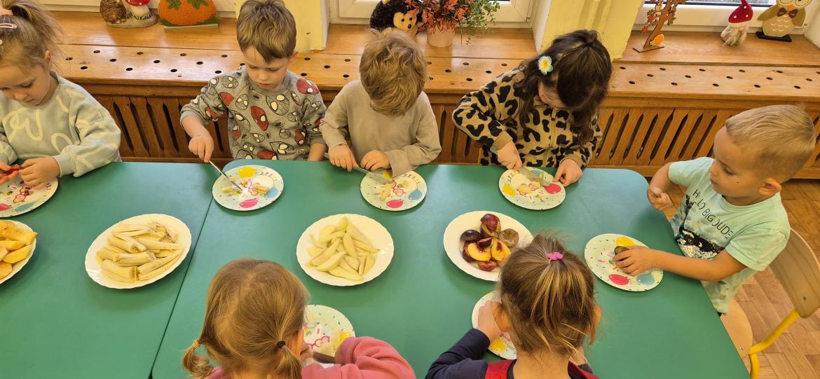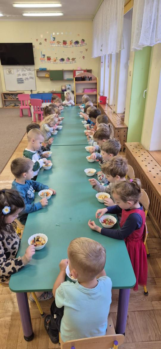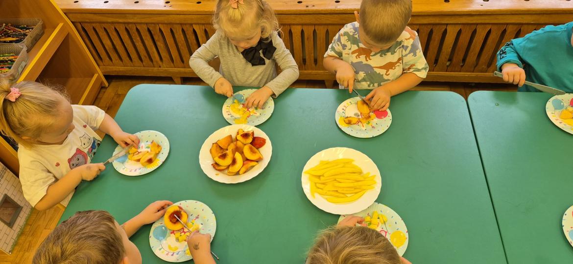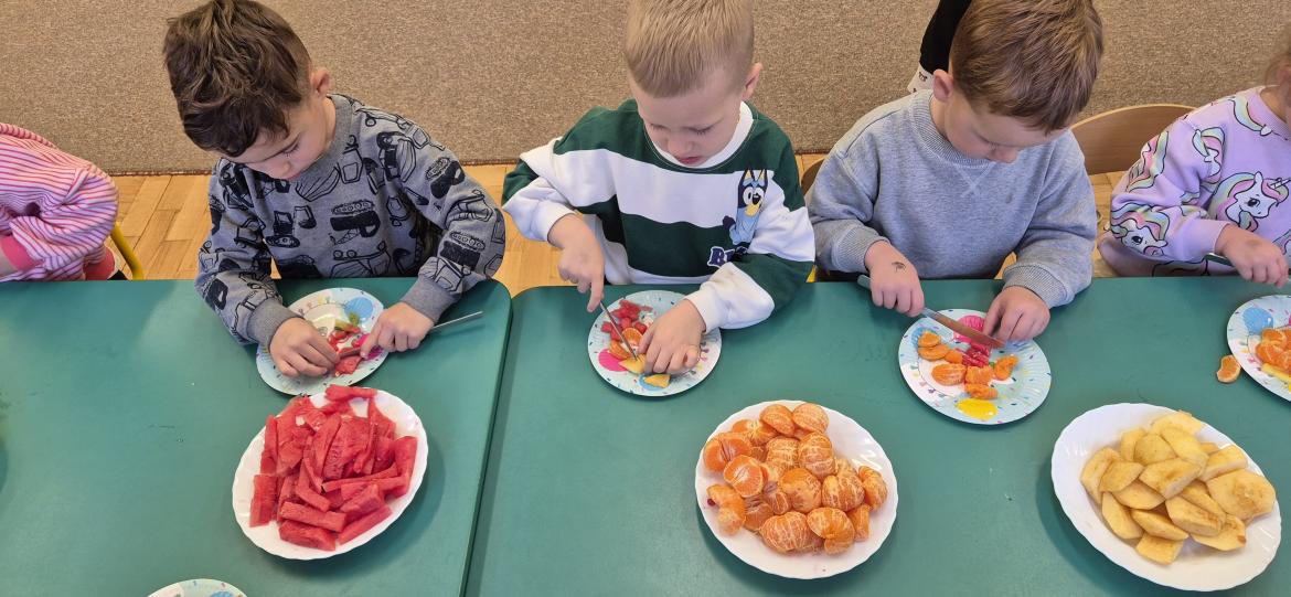 Dziś Jeżyki miały okazję pobawić sie w małych kucharzy i uczyli się, jak przygotować zdrową przekąskę! Krojenie, mieszanie i smakowanie – nauka przez zabawę w najlepszym wydaniu 🥝🍓🍍