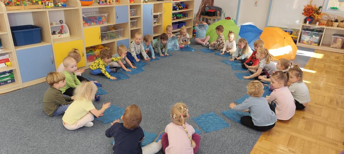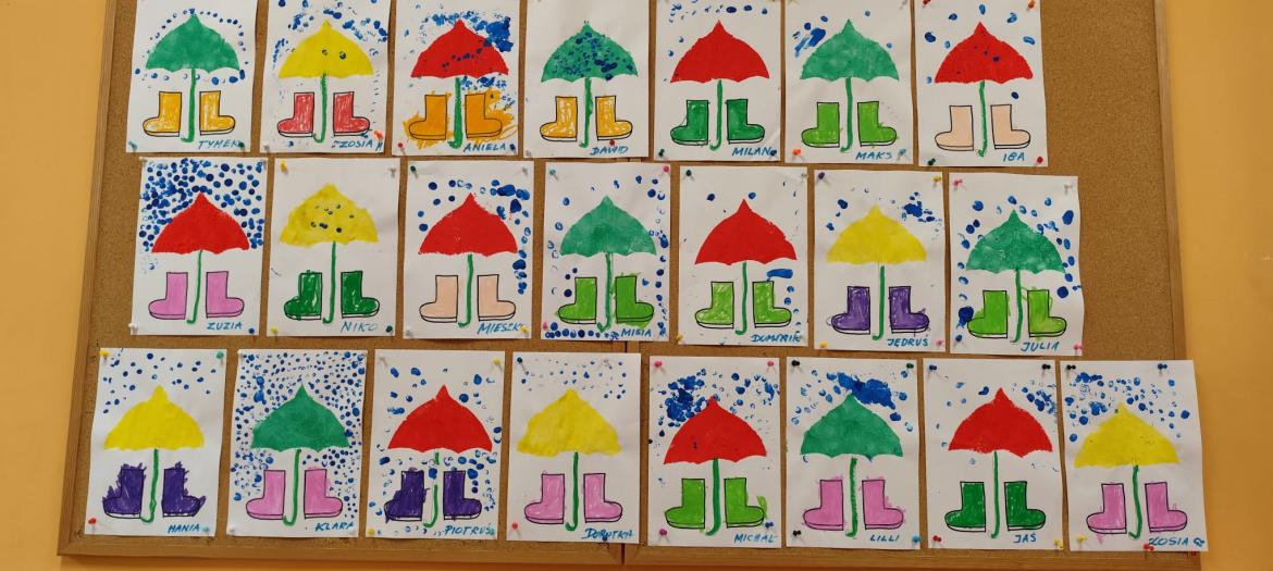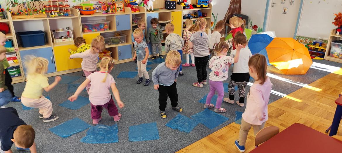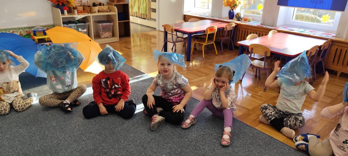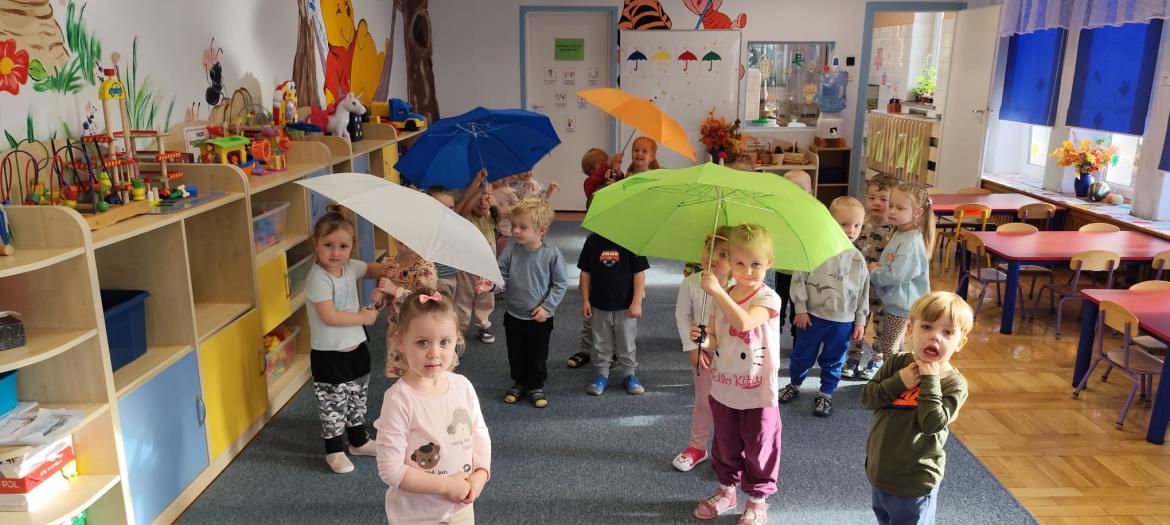 Piosenka była inspiracją do zajęć i zabaw - tańca z parasolem, improwizacji z folią do muzyki klasycznej oraz malowania parasoli.