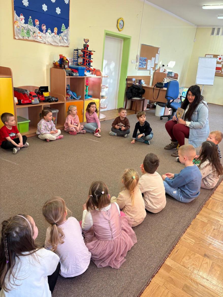 22.01.2026 r. Odwiedziła nas mama Emilki. Pani Natalia przeczytała Jeżykom książkę pt. „Piaskowy Wilk”, obiecała, że niedługo ponownie nas odwodzi i zaprezentuje nam dalsze losy bohaterów. Dziękujemy