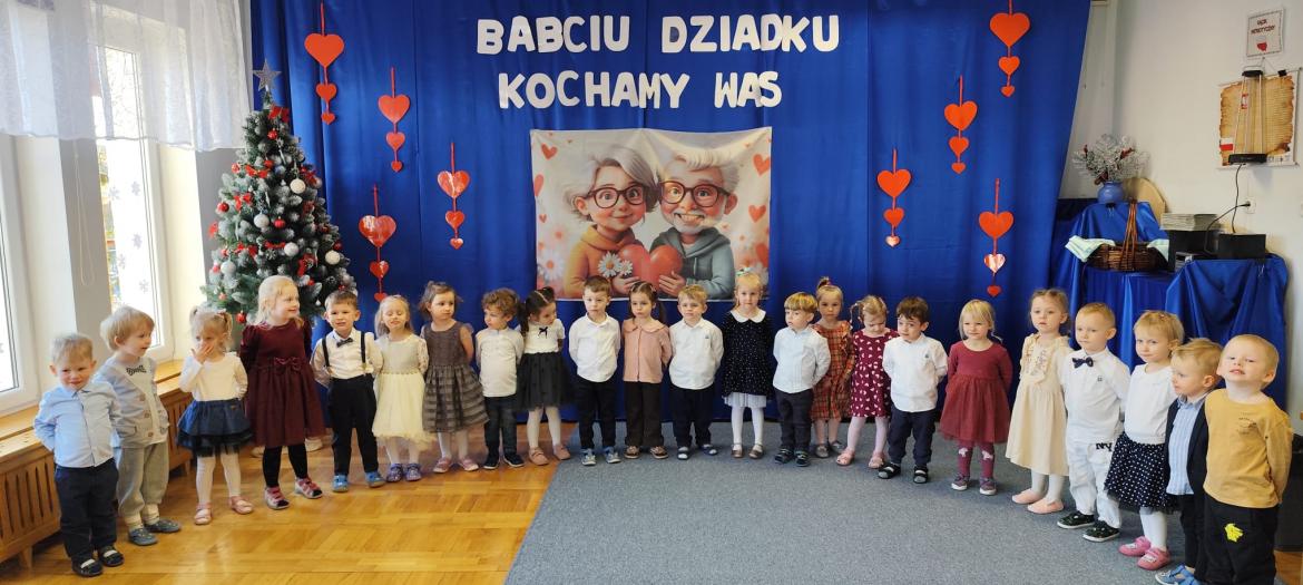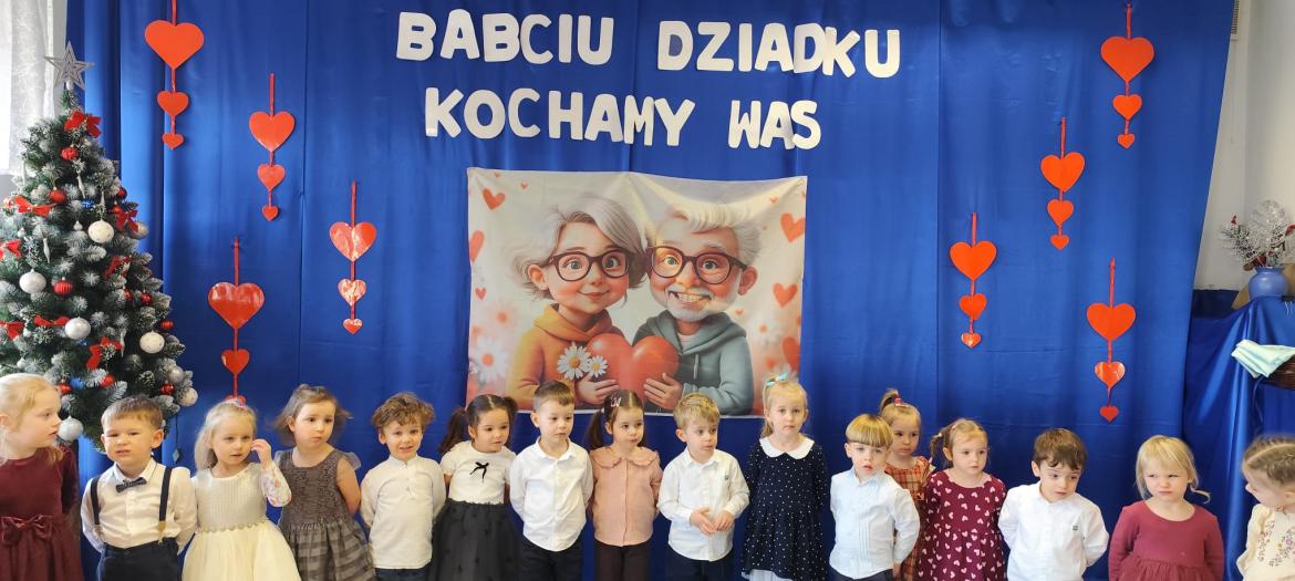 " Dziś dla babci słońce mamy i całusy dla dziadziusia. Dziś życzenia wnuczek składa i piosenki śpiewa wnusia".