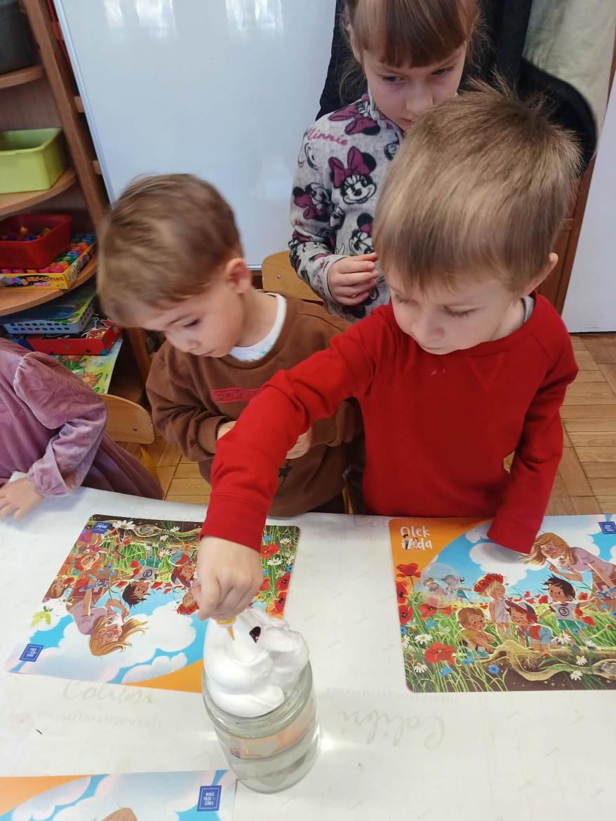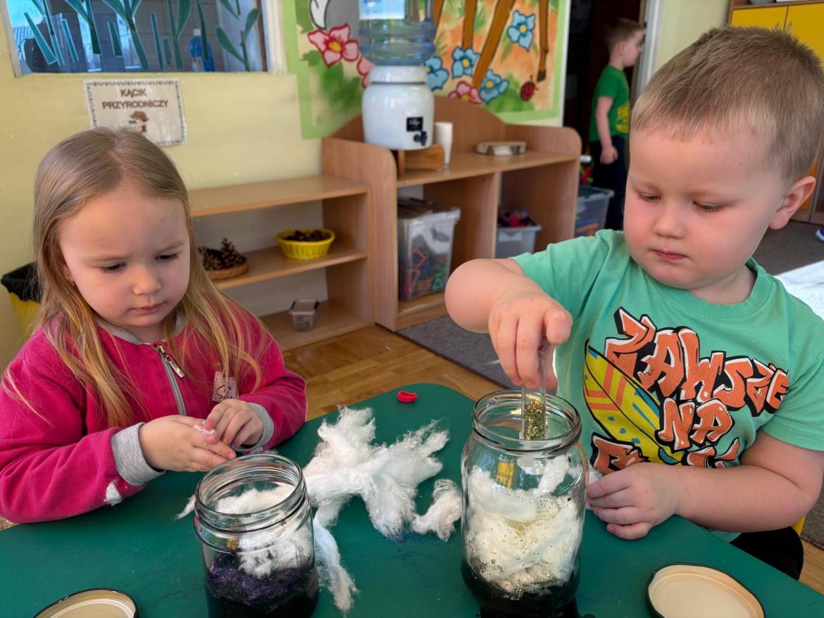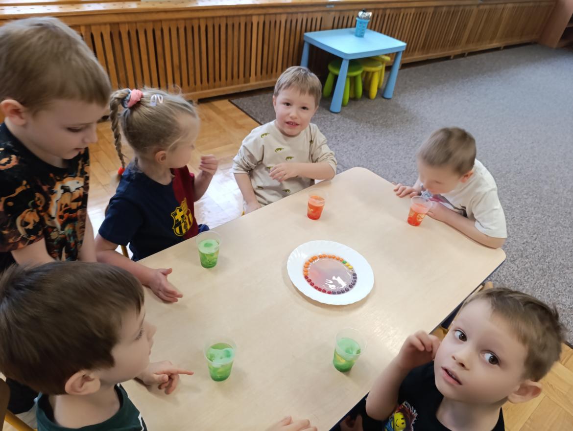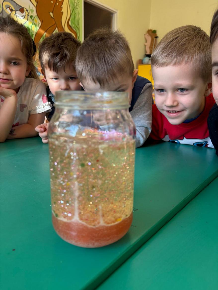 W tym tygodniu we wszystkich grupach odbył się Tydzień Eksperymentów. Dzieci wykonywały ciekawe i bezpieczne doświadczenia, odkrywając świat nauki poprzez zabawę.