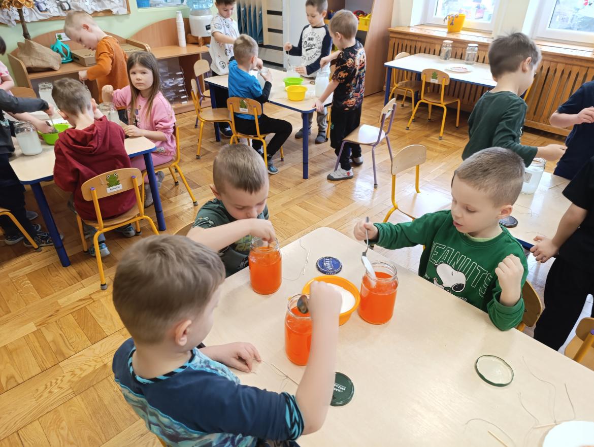 Dzieci uczestniczyły w zajęciach poświęconych tradycji Tłustego Czwartku. Były tematyczne zabawy oraz słodka degustacja pączków. To był dzień pełen radości i uśmiechu! 🍩