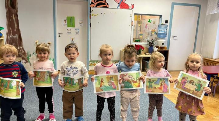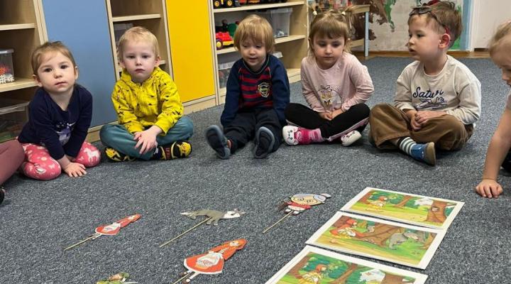 Grupa Biedronki uczestniczyła w zajęciach poświęconych poznaniu bajki „Czerwony Kapturek”. Dzieci z dużym zaangażowaniem układały chronologicznie ciąg wydarzeń z bajki, rozwijając przy tym pamięć i logiczne myślenie. W trakcie zajęć bawiły się także pacynkami i kukiełkami, wcielając się w bohaterów opowieści i rozwijając swoją wyobraźnię oraz umiejętności językowe.