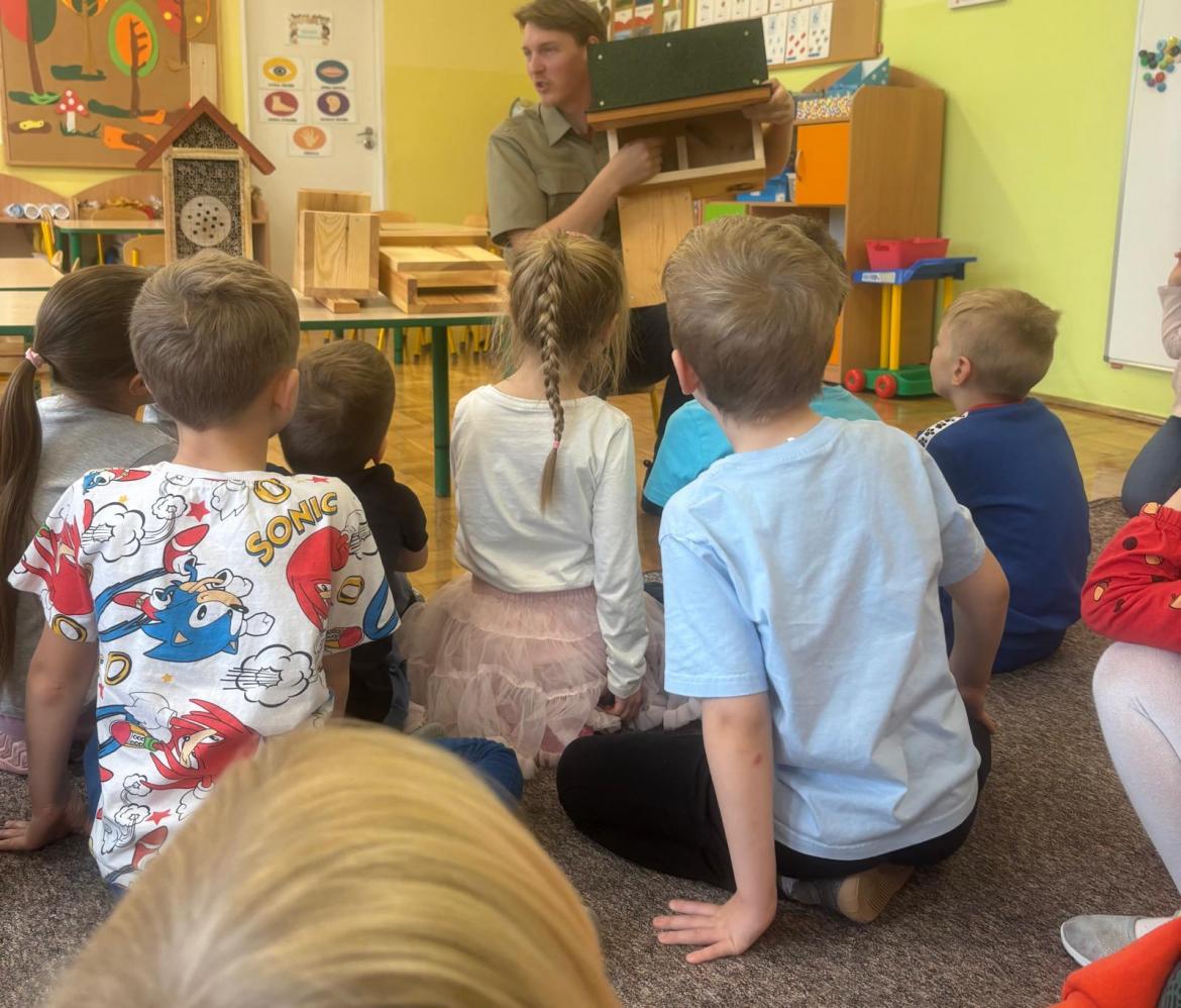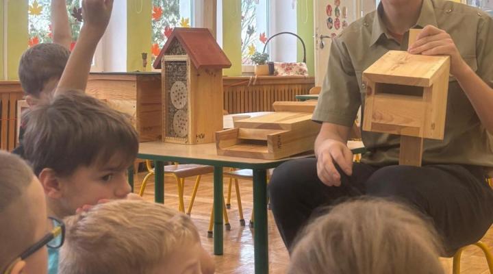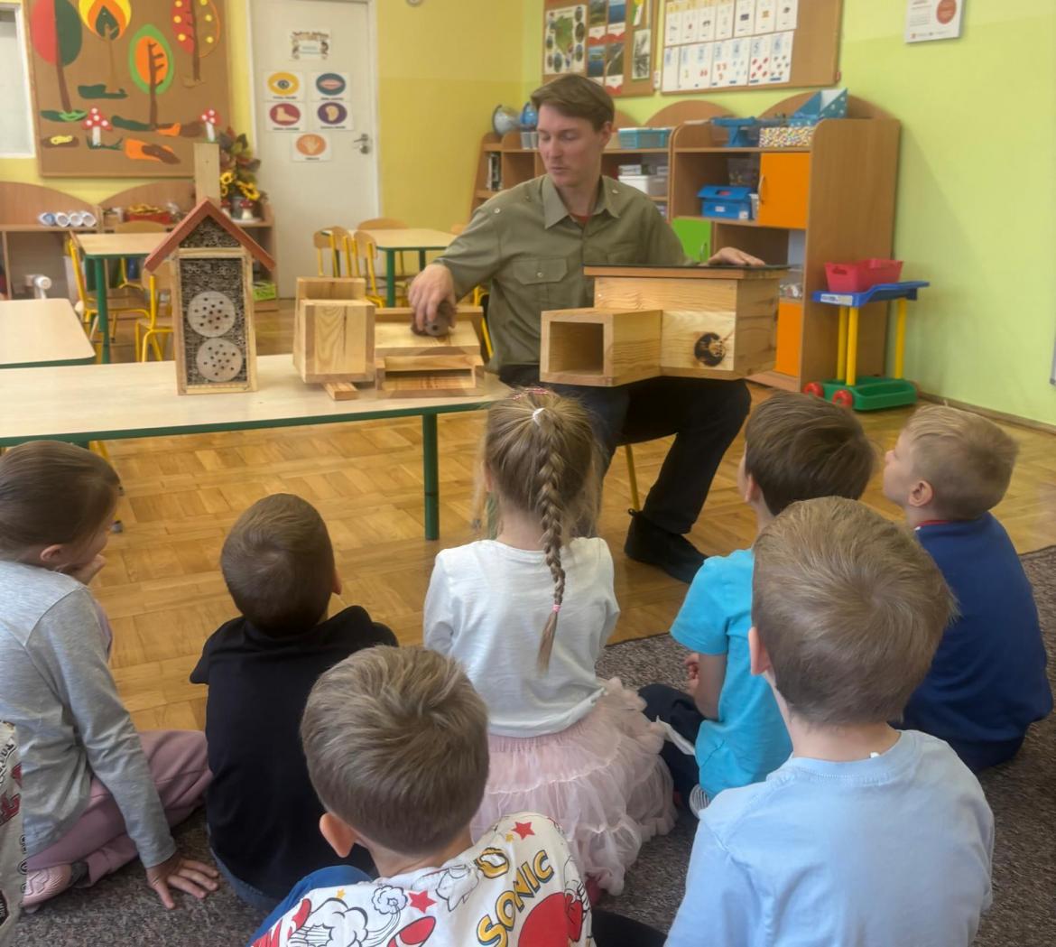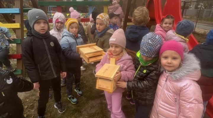 Zwierzęta mają coraz mniej miejsca. Pomóżmy znaleźć im nowy dom. Pan Antoni opowiedział nam gdzie kto zamieszka. Nowe „domki” znalazły miejsce w przedszkolnym ogrodzie.
