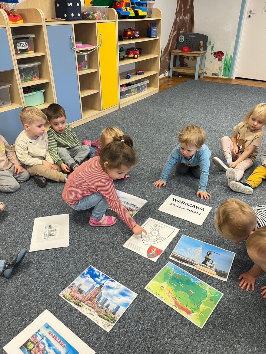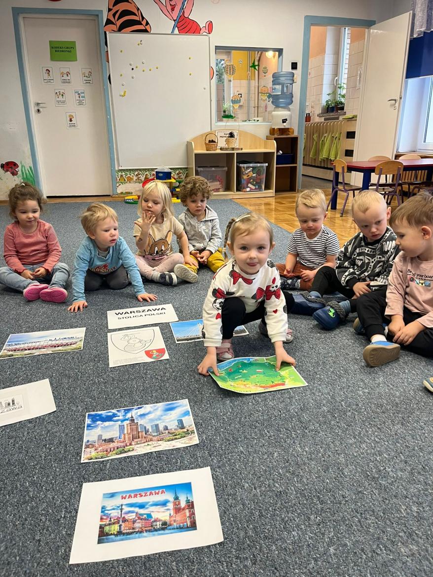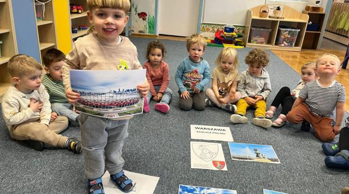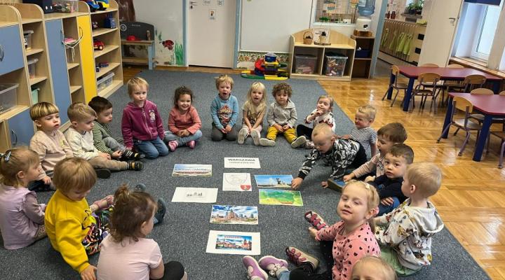 Dzieci z grupy Biedronki uczestniczyły dziś w zajęciach poświęconych stolicy Polski – Warszawie. Podczas spotkania poznały najważniejsze symbole miasta, oglądały ilustracje przedstawiające charakterys…