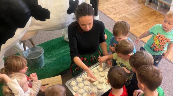 uczestniczyły w dojeniu krowy,