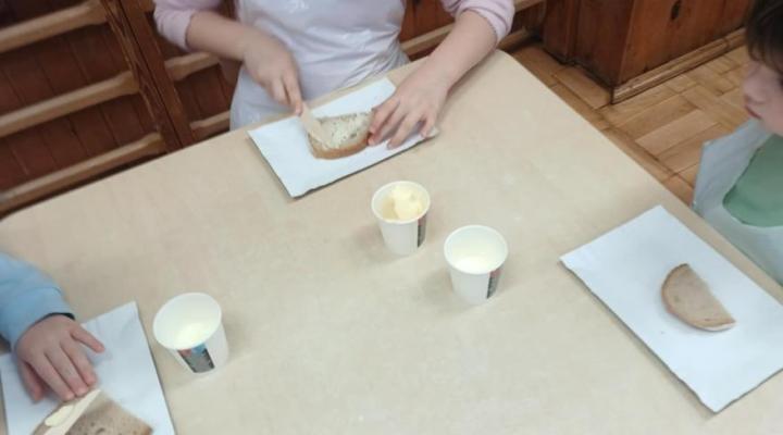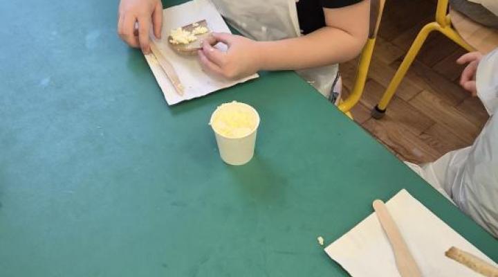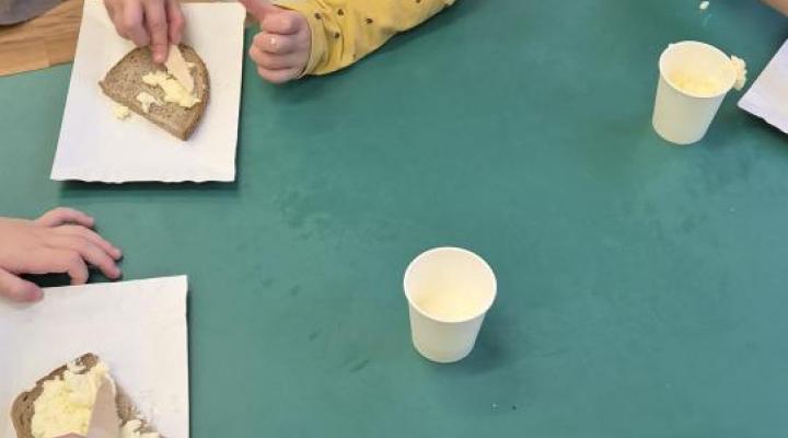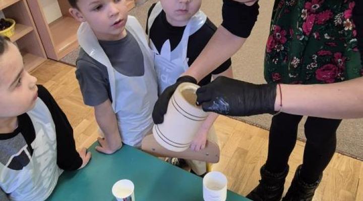 Każde dziecko własnoręcznie przygotowało prawdziwe, domowe masło, poznając cały proces jego powstawania — od śmietanki aż p…