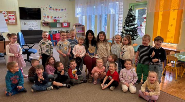 22.01.2026 r. Odwiedziła nas mama Emilki. Pani Natalia przeczytała Jeżykom książkę pt. „Piaskowy Wilk”, obiecała, że niedługo ponownie nas odwodzi i zaprezentuje nam dalsze losy bohaterów. Dziękujemy