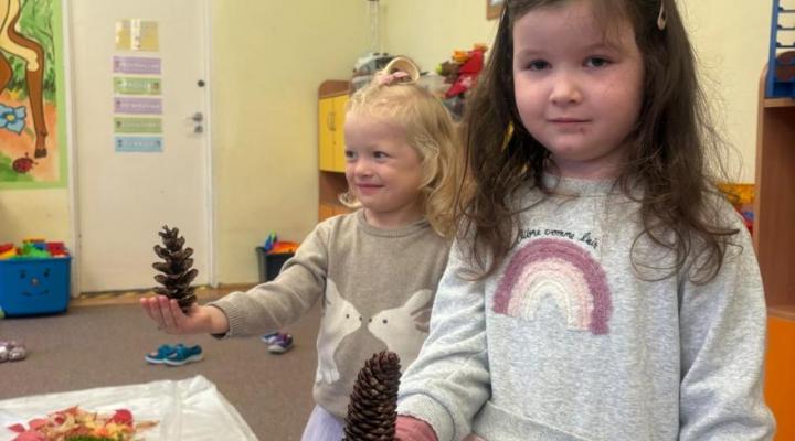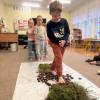 Jeżyki wykorzystały dary jesieni i stworzyły jesienną ścieżkę sensoryczną, która składała się z szyszek, kasztanów, liści, igieł sosny oraz mchu.