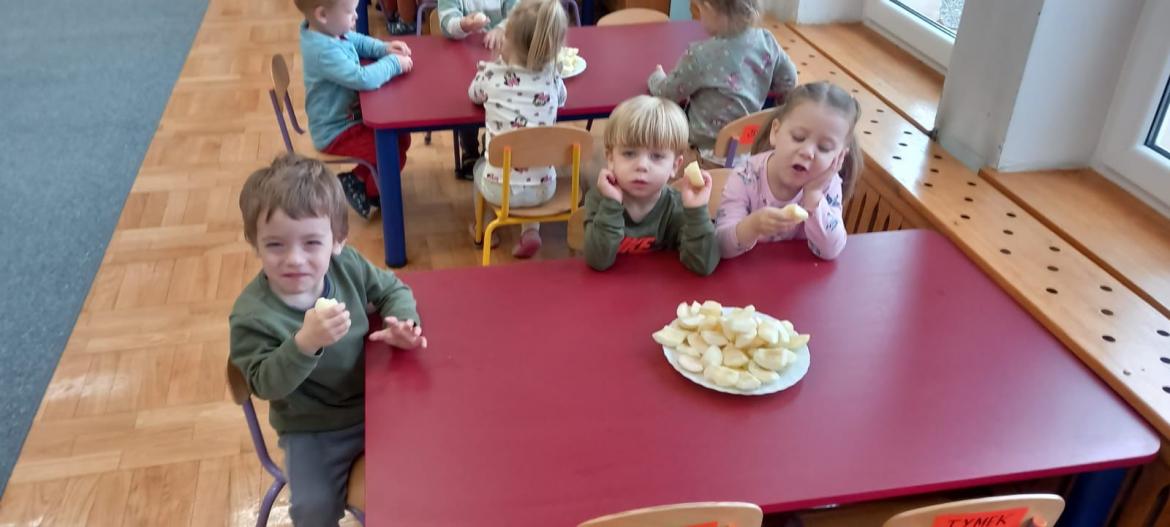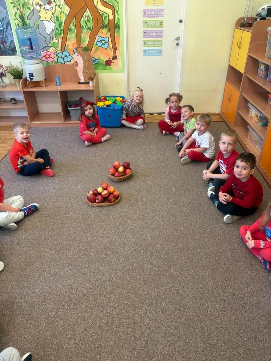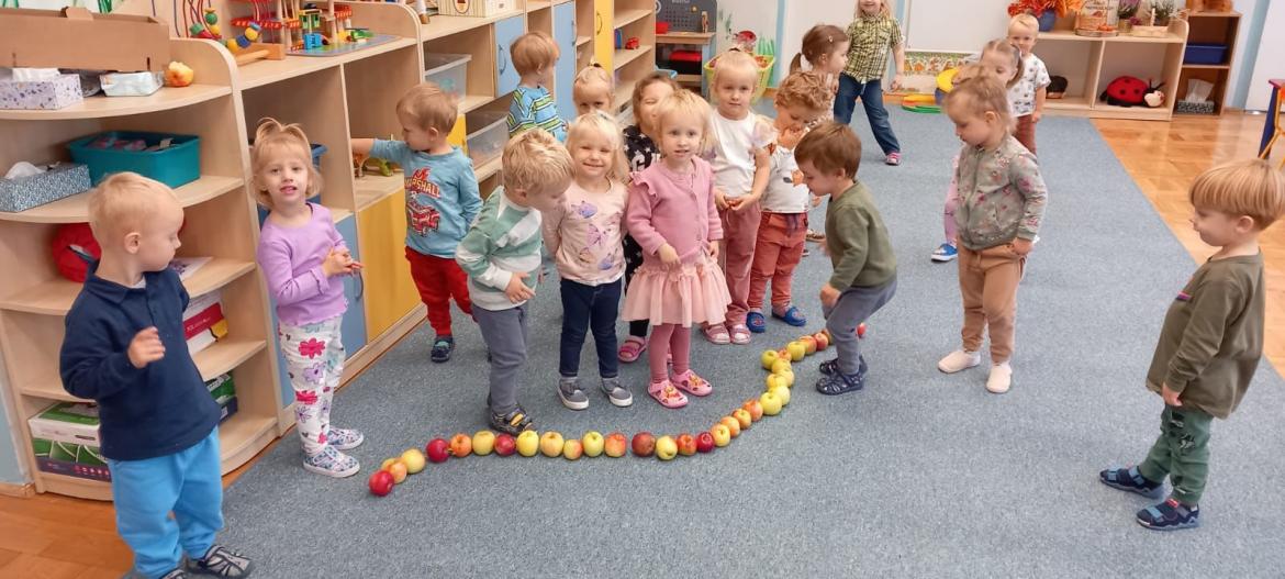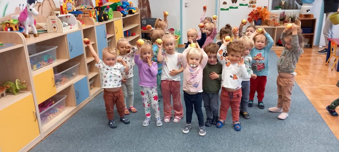 Dnia 26.09.2025 Jeżyki obchodziły Dzień Jabłka. Celem zajęć i wspólnej zabawy było zachęcenie dzieci do spożywania jabłek i ich przetworów, jako źródła witamin.