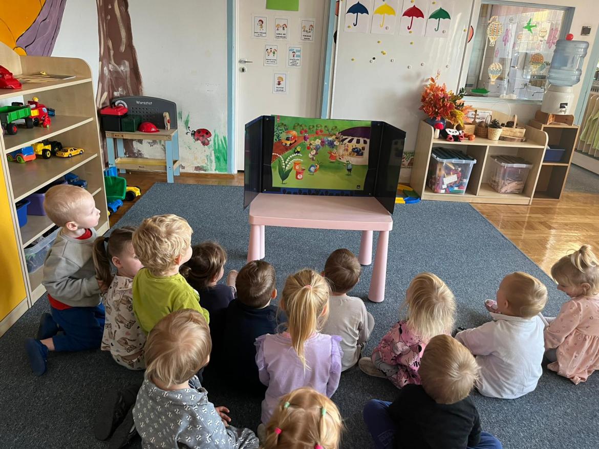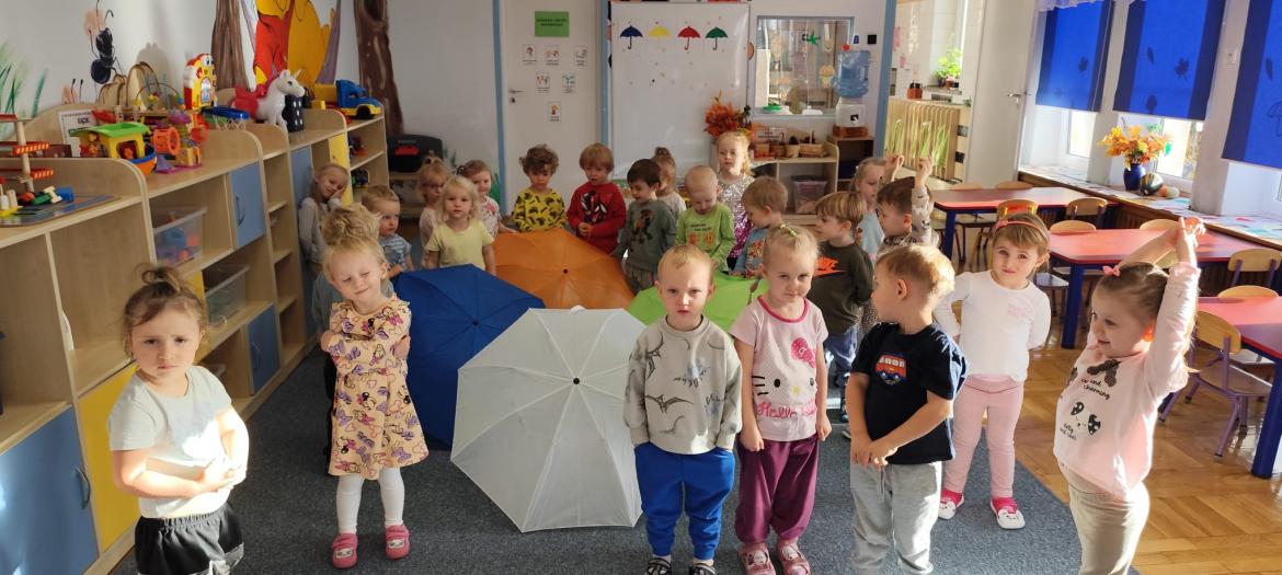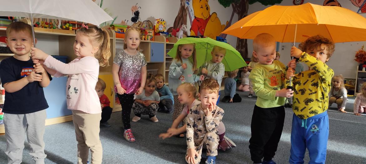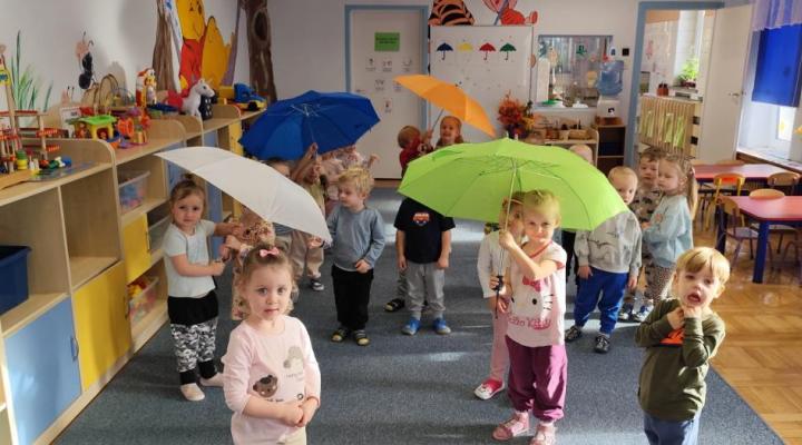 Piosenka była inspiracją do zajęć i zabaw - tańca z parasolem, improwizacji z folią do muzyki klasycznej oraz malowania parasoli.