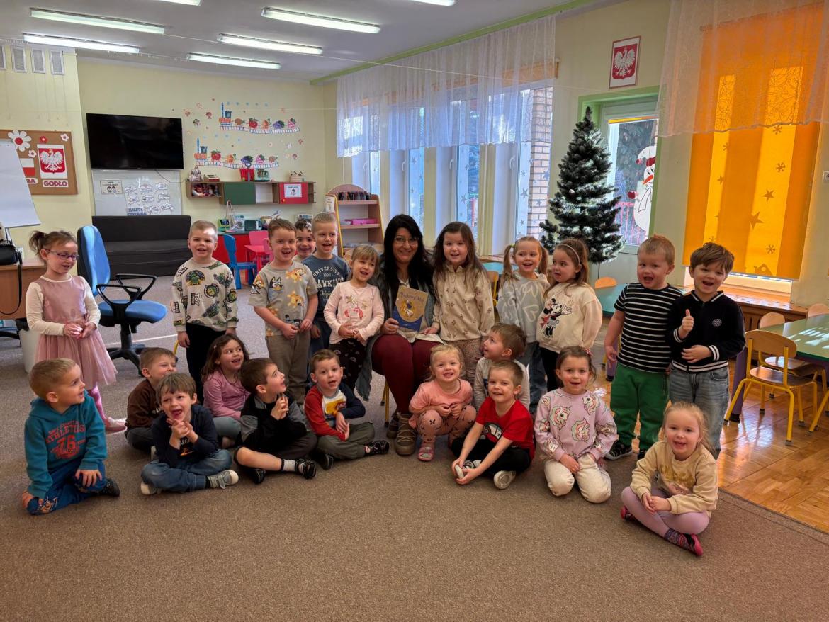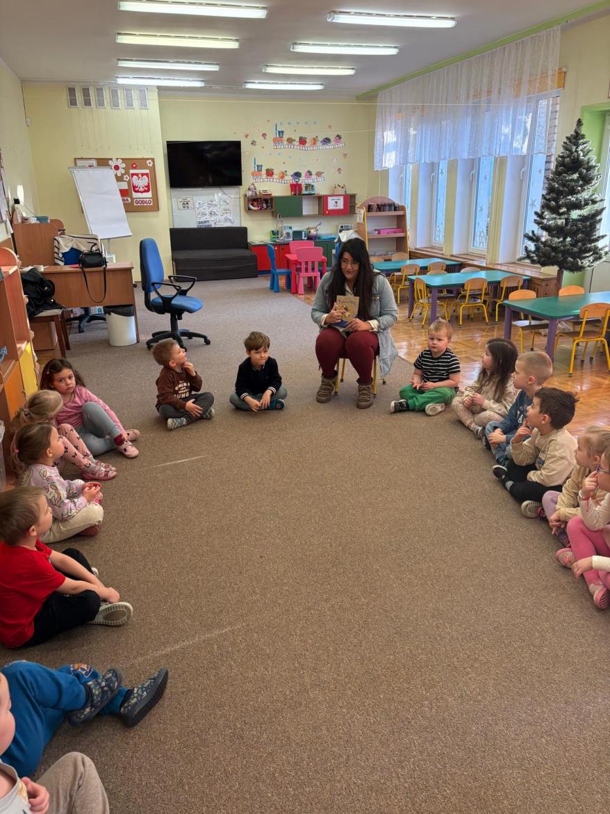 22.01.2026 r. Odwiedziła nas mama Emilki. Pani Natalia przeczytała Jeżykom książkę pt. „Piaskowy Wilk”, obiecała, że niedługo ponownie nas odwodzi i zaprezentuje nam dalsze losy bohaterów. Dziękujemy