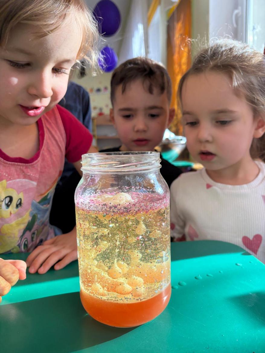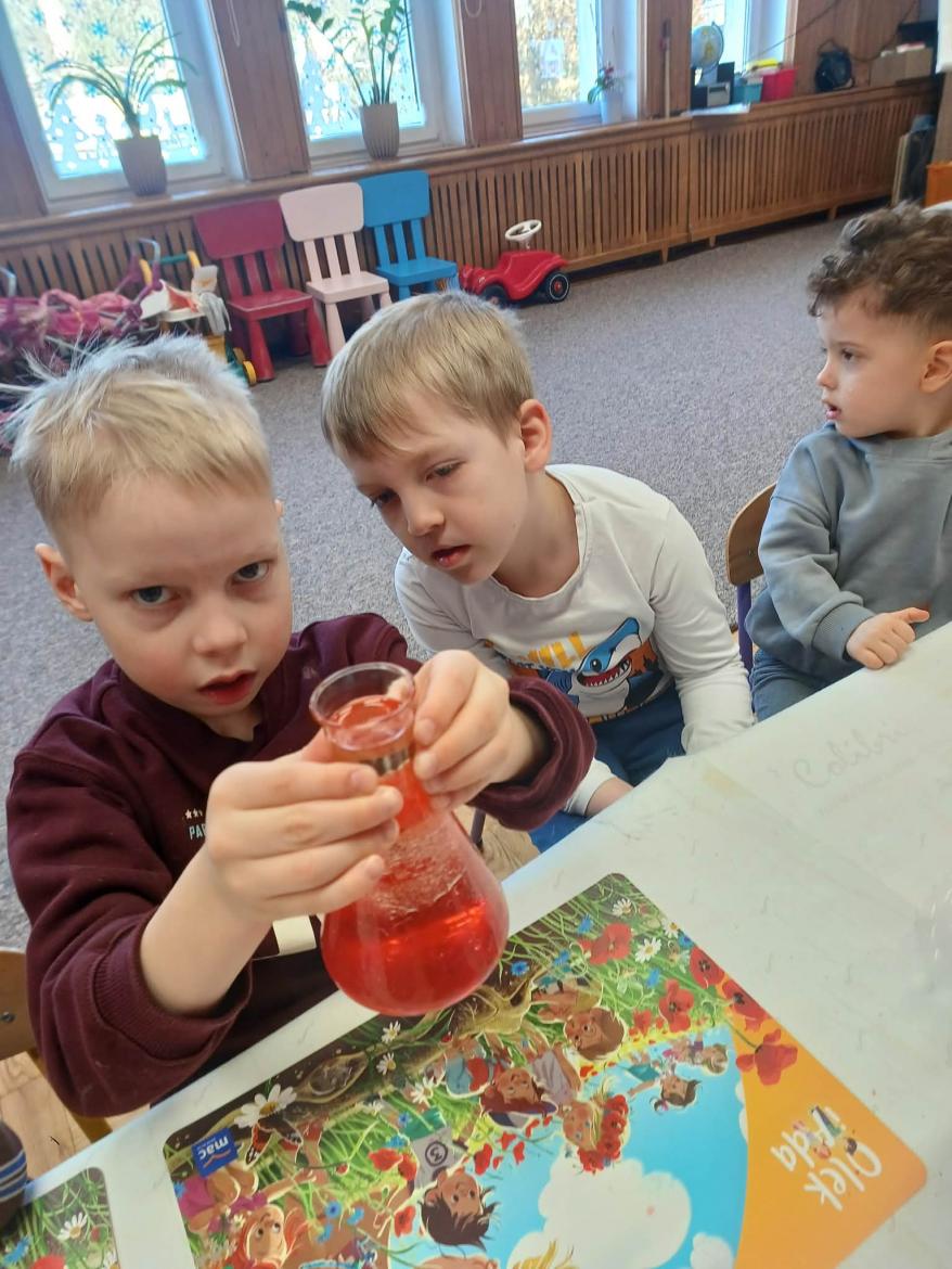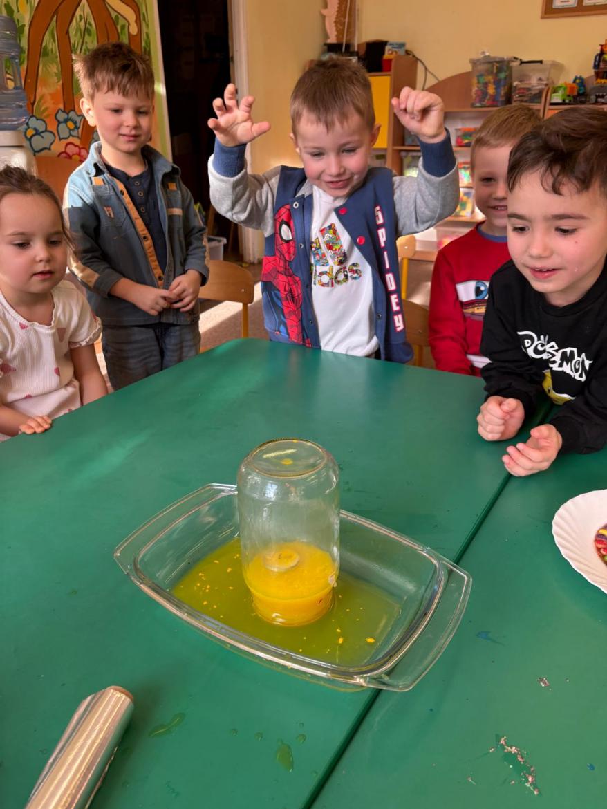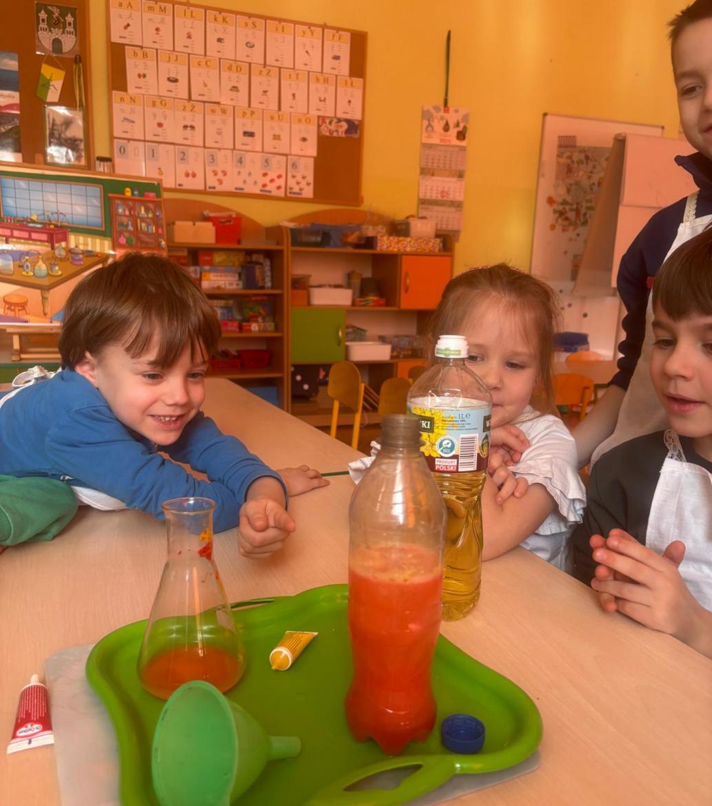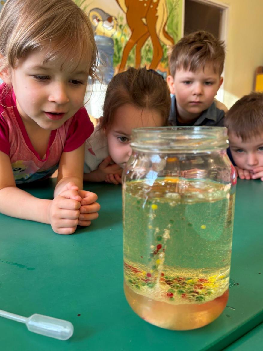 W tym tygodniu we wszystkich grupach odbył się Tydzień Eksperymentów. Dzieci wykonywały ciekawe i bezpieczne doświadczenia, odkrywając świat nauki poprzez zabawę.