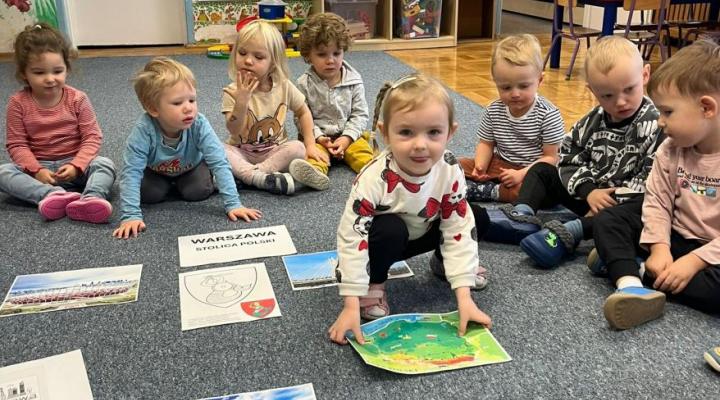 Dzieci z grupy Biedronki uczestniczyły dziś w zajęciach poświęconych stolicy Polski – Warszawie. Podczas spotkania poznały najważniejsze symbole miasta, oglądały ilustracje przedstawiające charakterys…