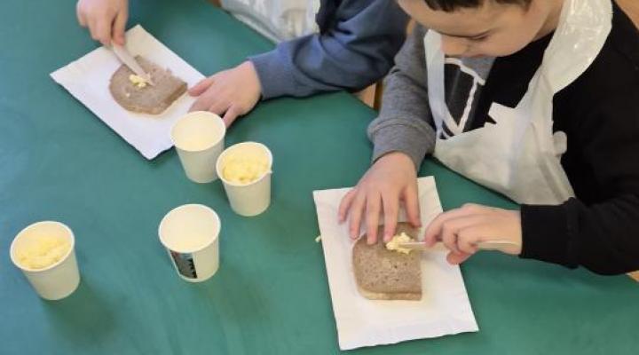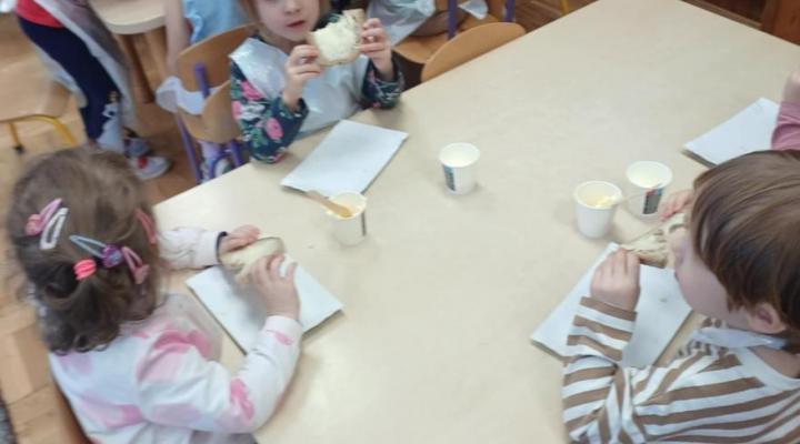 Każde dziecko własnoręcznie przygotowało prawdziwe, domowe masło, poznając cały proces jego powstawania — od śmietanki aż p…