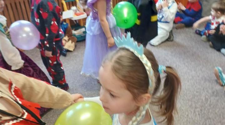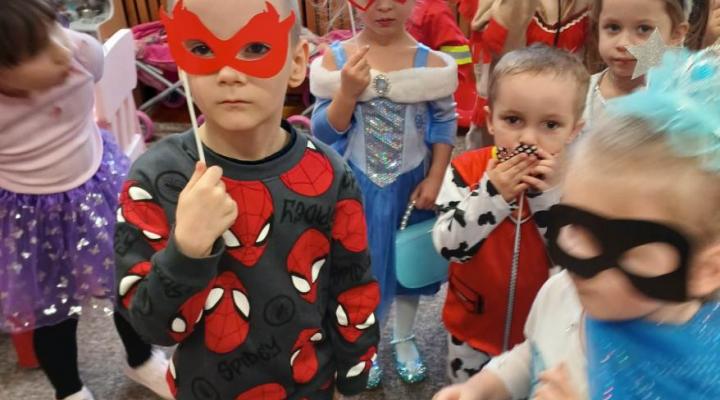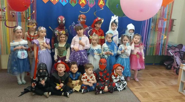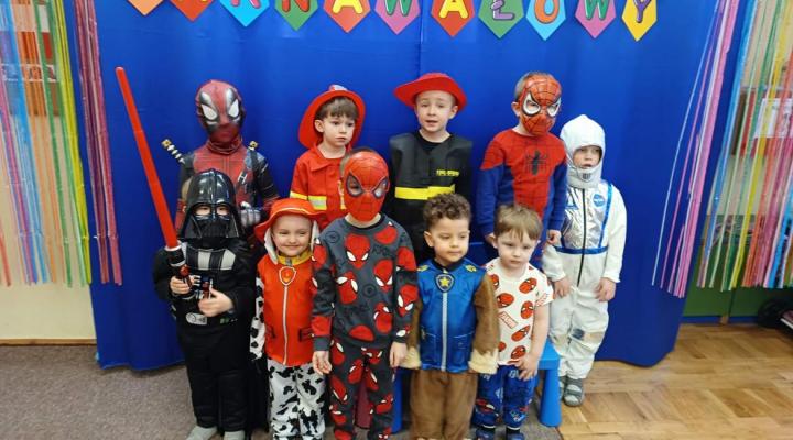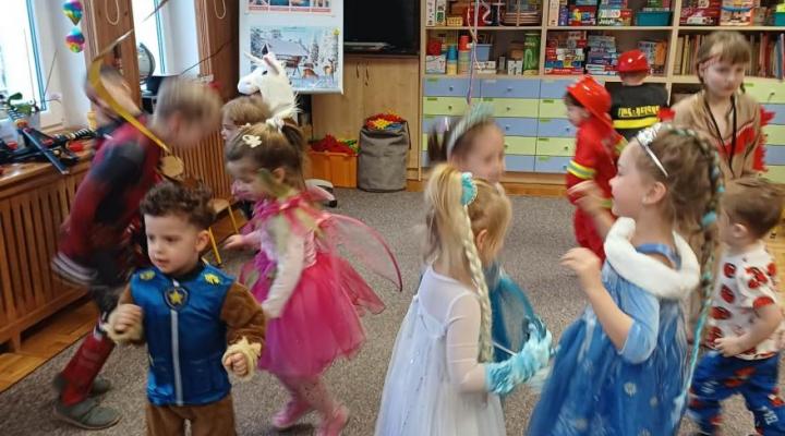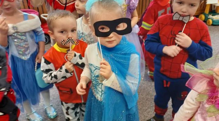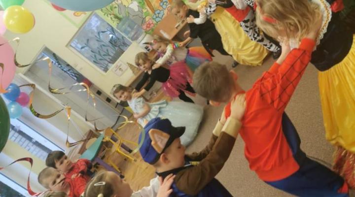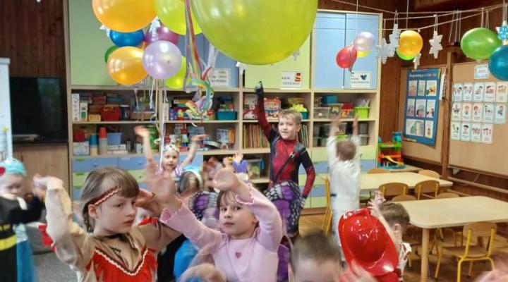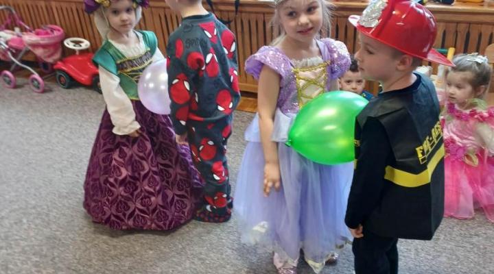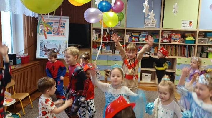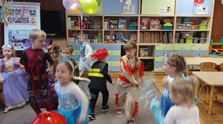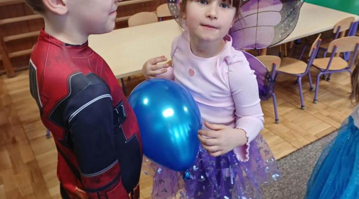 Bal karnawałowy dla przedszkolaków to dzień niezwykły, wyczekiwany. Jest atrakcją bardzo lubianą przez dzieci, dostarczającą im wielu przeżyć i radości. Tak też było u nas. Tego dnia już od rana w przedszkolu pojawiały się kolorowe postacie. Dzieci przebrane były za bohaterów znanych bajek, w salach przedszkolnych można było spotkać wróżki, królewny, delikatne motylki, rycerzy, strażaka, Spider-Mana, lwa, pszczółkę ,… nie sposób zliczyć i wymienić tych wszystkich postaci. W tym dniu dzieci obejrzały również teatrzyk pt. ,,Magia słów " i przypomniały sobie trzy magiczne słowa.