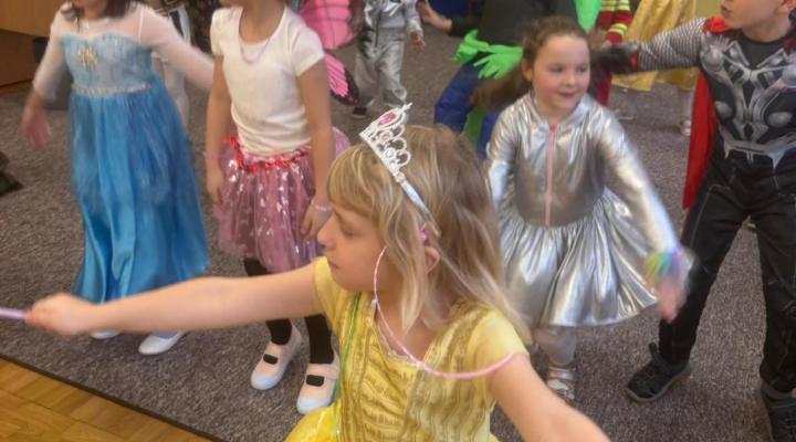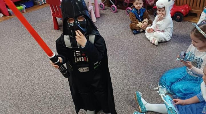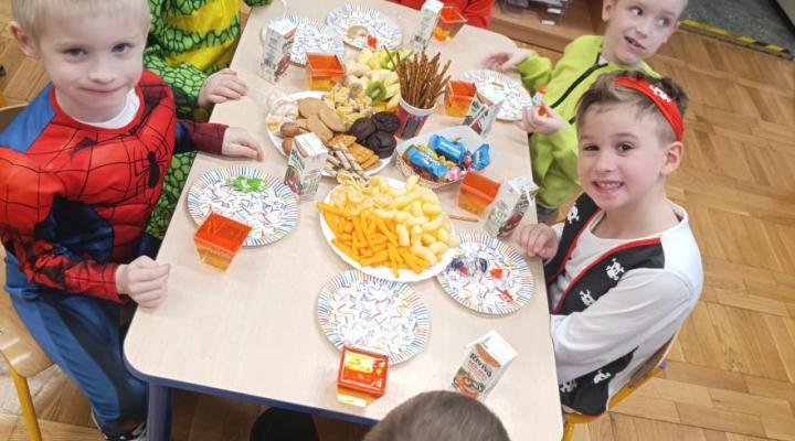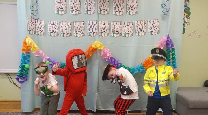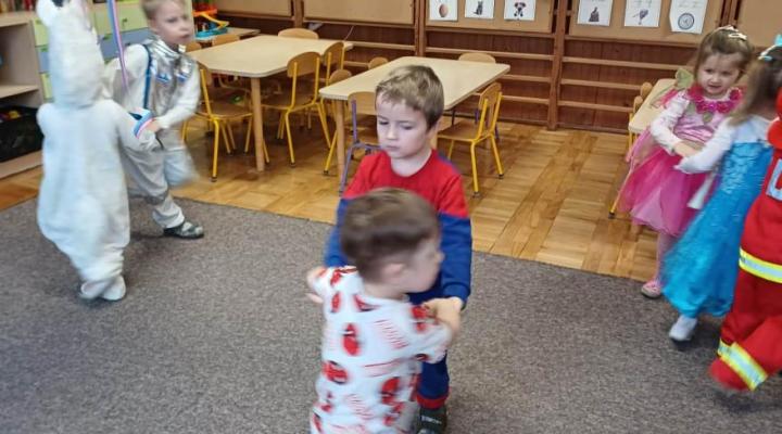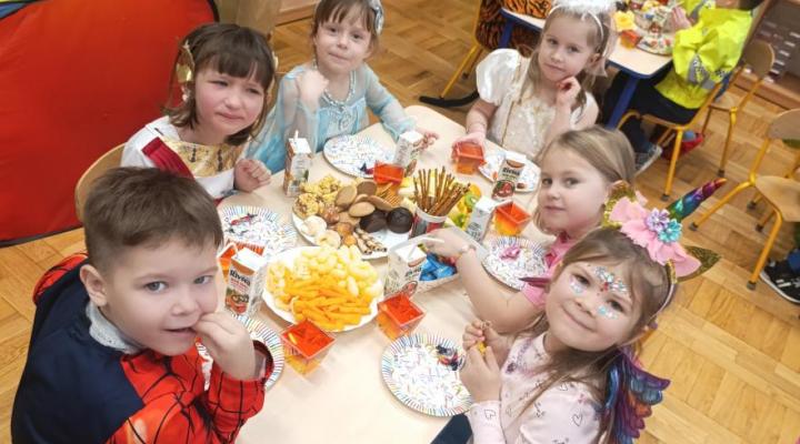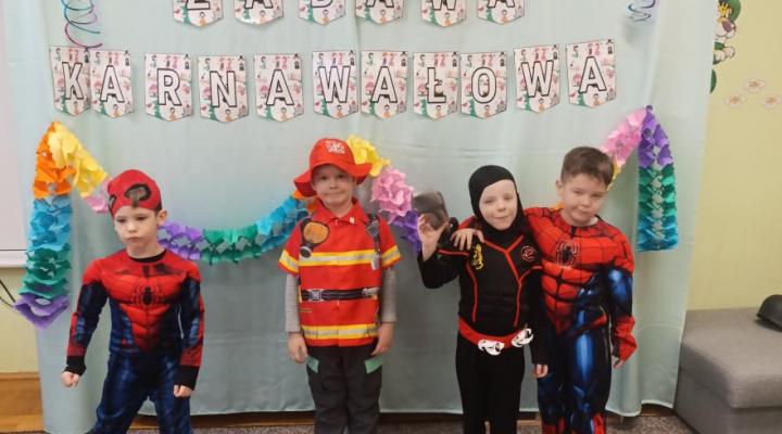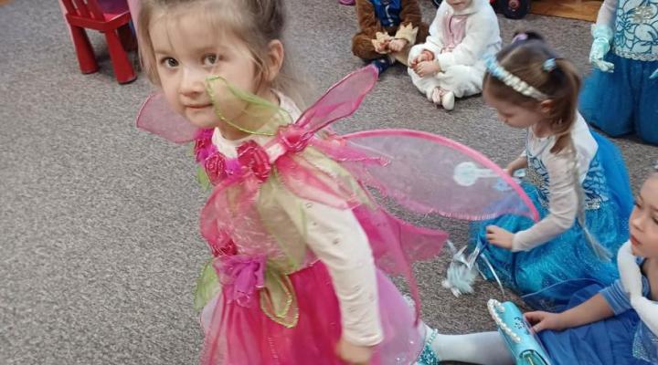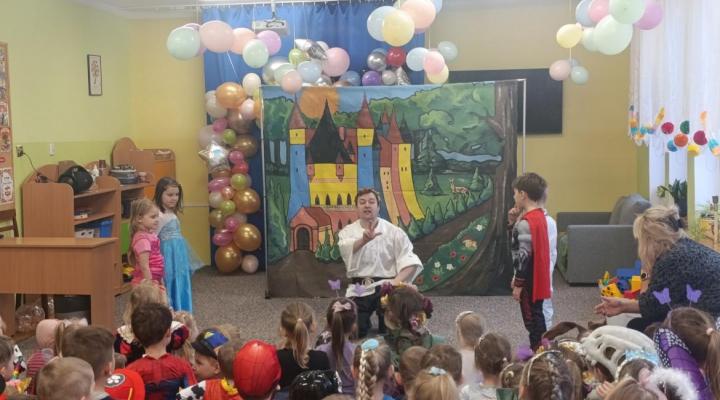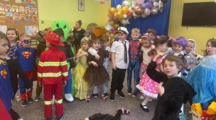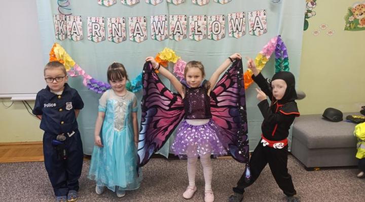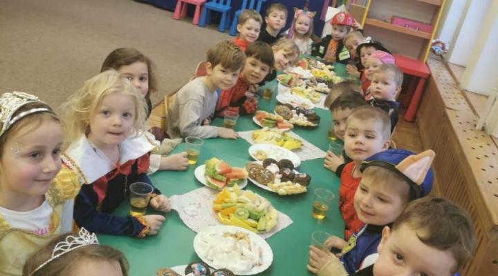 Bal karnawałowy dla przedszkolaków to dzień niezwykły, wyczekiwany. Jest atrakcją bardzo lubianą przez dzieci, dostarczającą im wielu przeżyć i radości. Tak też było u nas. Tego dnia już od rana w przedszkolu pojawiały się kolorowe postacie. Dzieci przebrane były za bohaterów znanych bajek, w salach przedszkolnych można było spotkać wróżki, królewny, delikatne motylki, rycerzy, strażaka, Spider-Mana, lwa, pszczółkę ,… nie sposób zliczyć i wymienić tych wszystkich postaci. W tym dniu dzieci obejrzały również teatrzyk pt. ,,Magia słów " i przypomniały sobie trzy magiczne słowa.