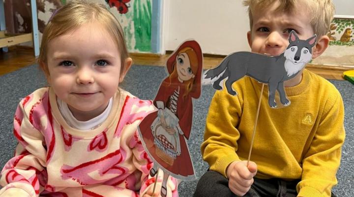 Grupa Biedronki uczestniczyła w zajęciach poświęconych poznaniu bajki „Czerwony Kapturek”. Dzieci z dużym zaangażowaniem układały chronologicznie ciąg wydarzeń z bajki, rozwijając przy tym pamięć i logiczne myślenie. W trakcie zajęć bawiły się także pacynkami i kukiełkami, wcielając się w bohaterów opowieści i rozwijając swoją wyobraźnię oraz umiejętności językowe.