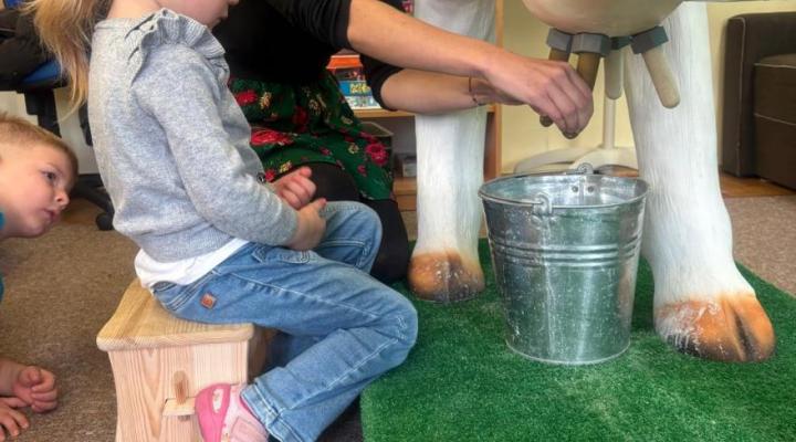 uczestniczyły w dojeniu krowy,