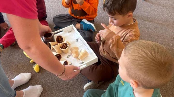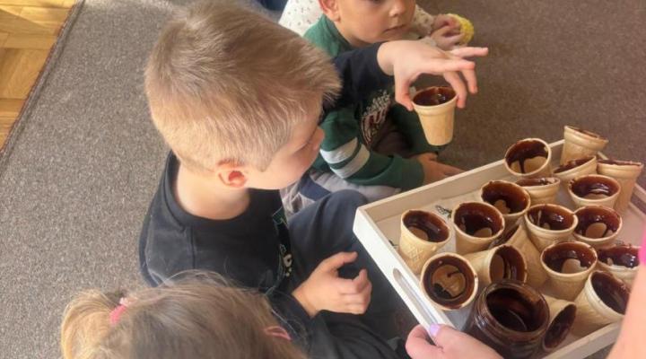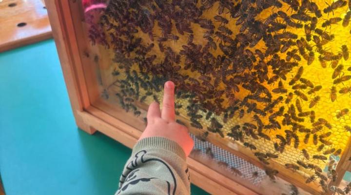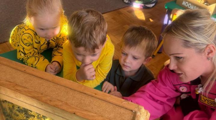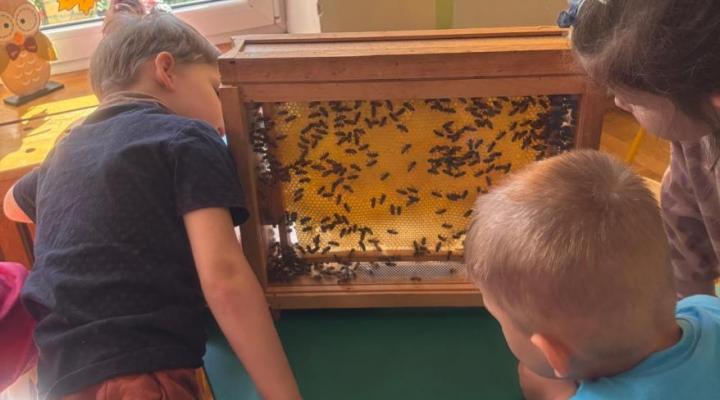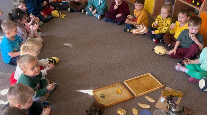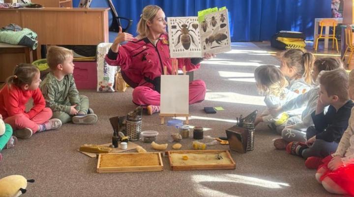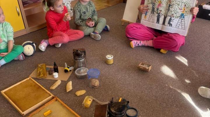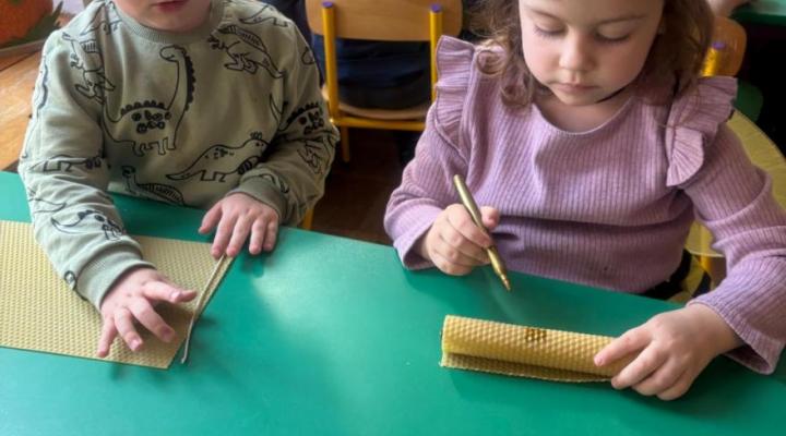 21.10. 2025 odwidziała nas Pani Agnieszka z „Mioduszkowelove”. Dzieci zapoznały się pracą pszczelarza. Odbył się konkurs szukania matki (królowej) na plastrze miodu. Mogliśmy delektować się również pysznym czekoladowym miodem. Na zakończenie każde dziecko wykonało świece z węzy. Dziękujemy za odwiedziny.