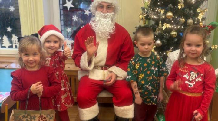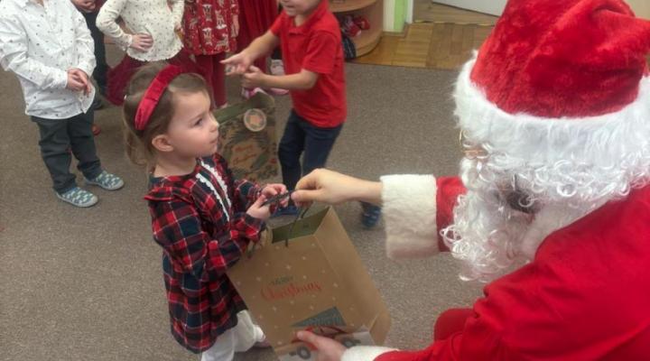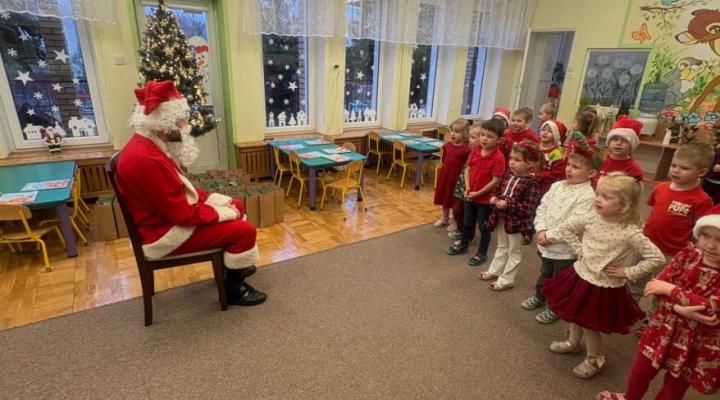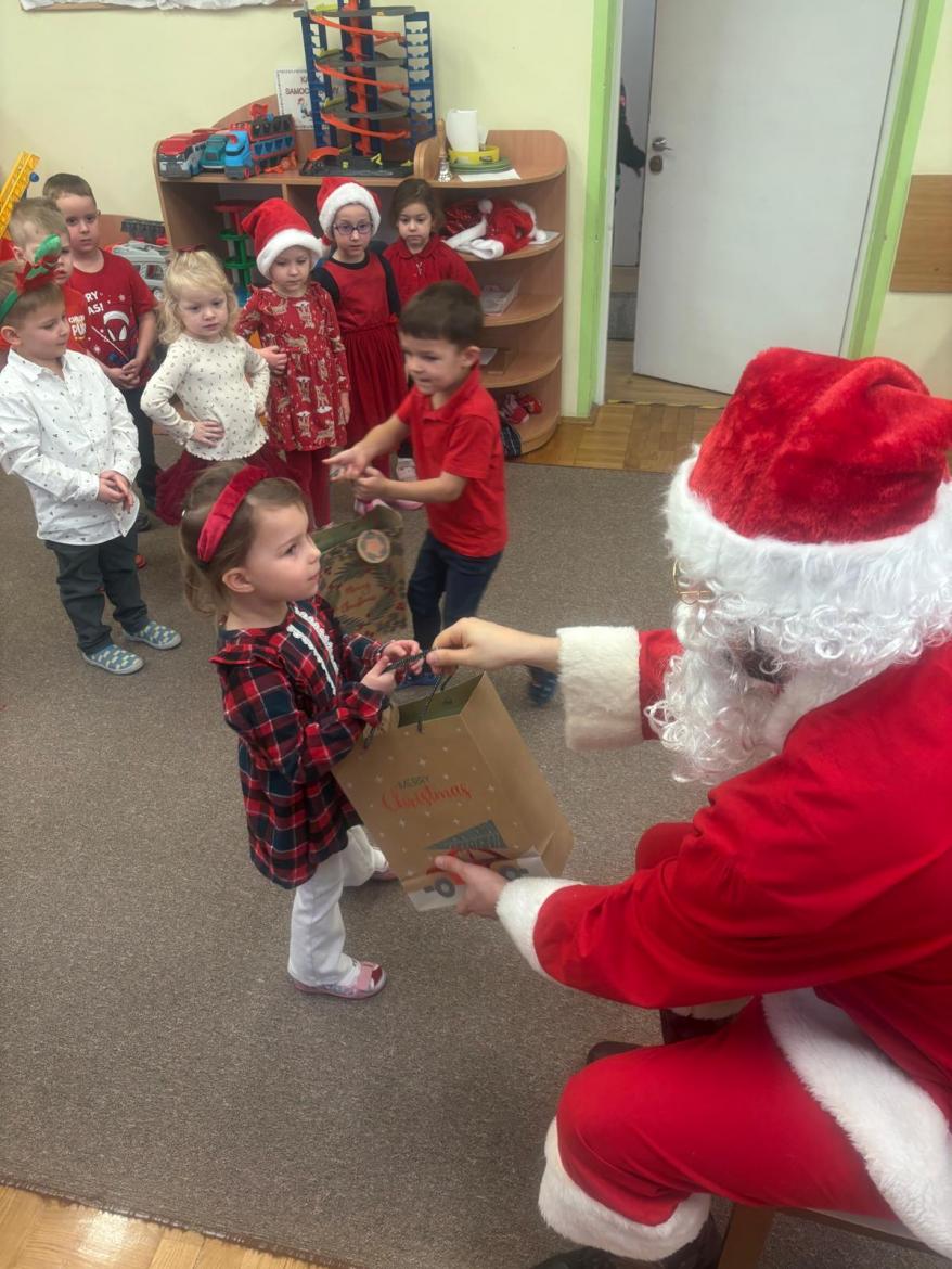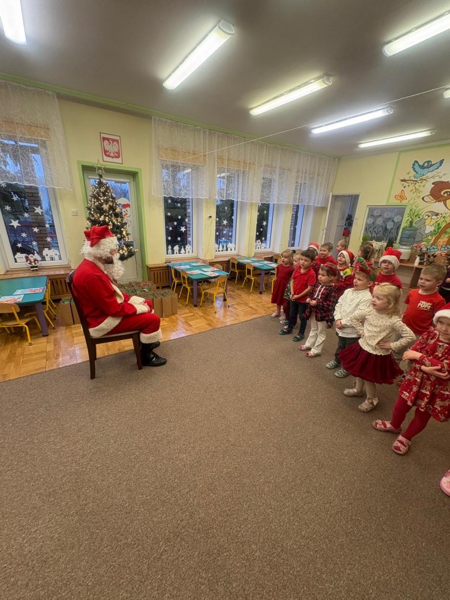 5 grudnia nasze przedszkole odwiedził bardzo miły i długo oczekiwany gość. Miał czerwony strój, długą, białą brodę, dźwigał na plecach bardzo ciężki worek, a w nim prezenty. Przedszkolaki zaśpiewały Mikołajowi piosenki, a on obdarował wszystkie dzieci prezentami. Święty Mikołaju bardzo dziękujemy za odwiedziny i do zobaczenia za rok!
